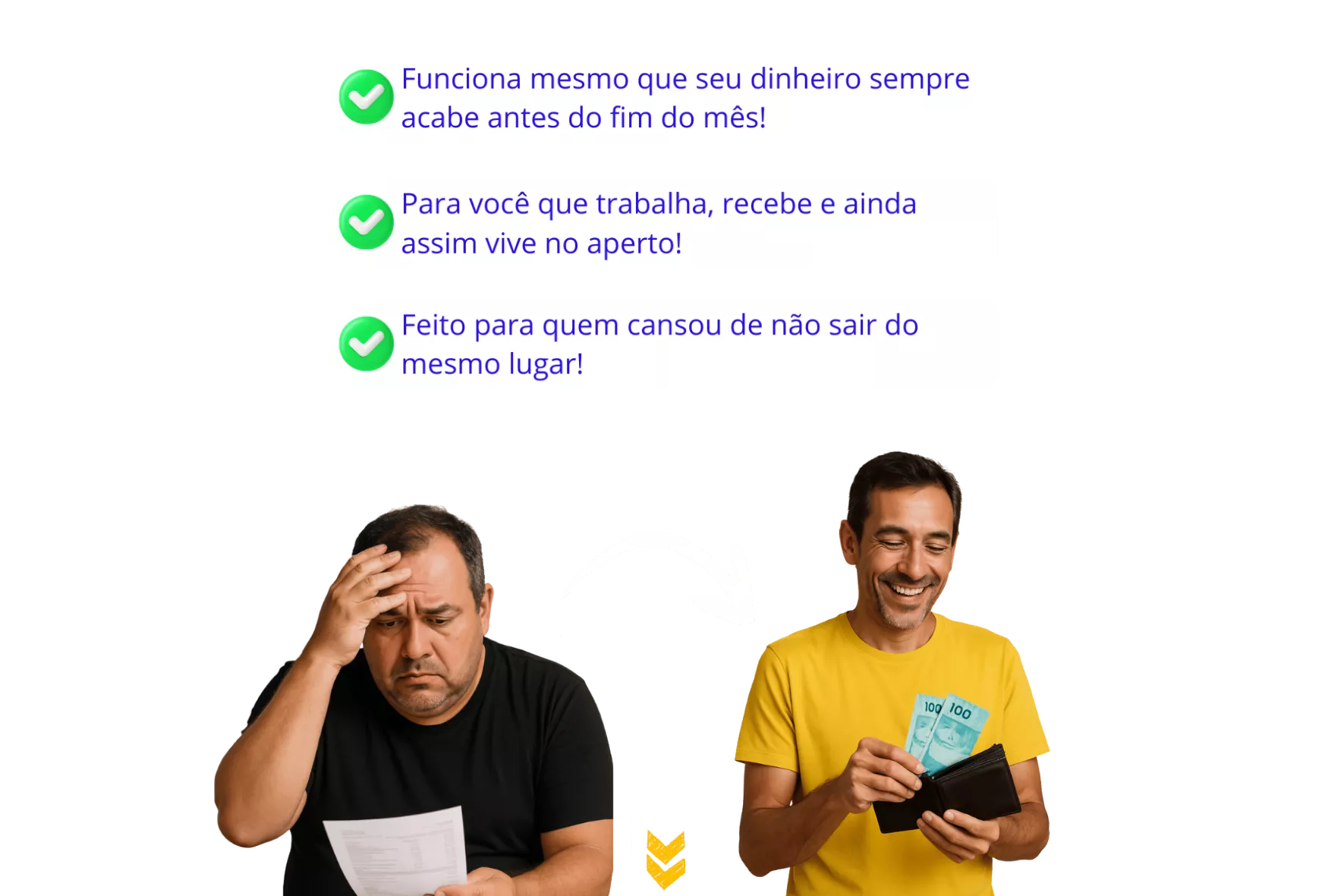 Você terá acesso ao Protocolo que vai te ajudar a sair do sufoco financeiro e te fazer sobrar dinheiro todos os meses.